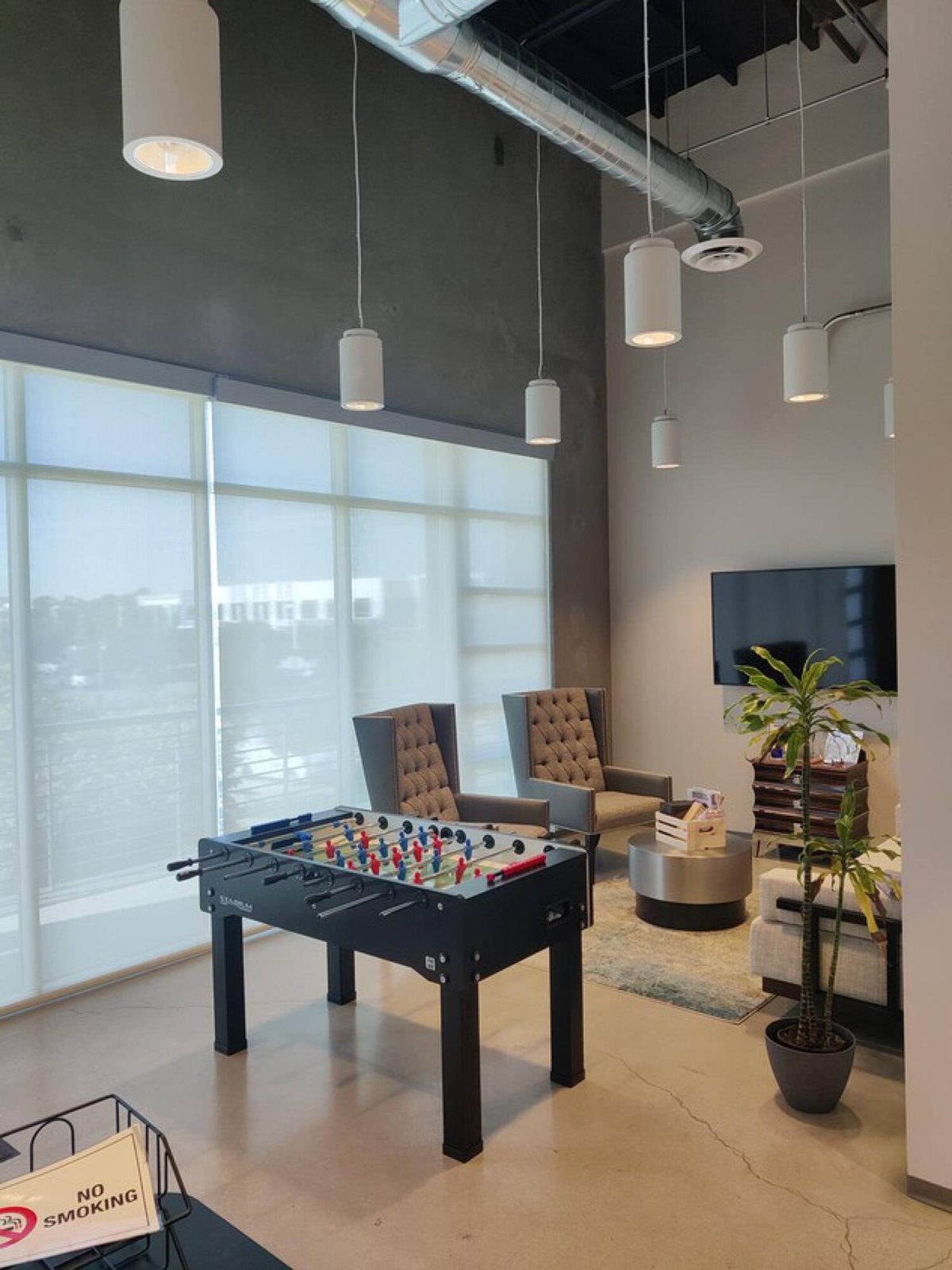 750 square foot shared space within a 2,530 square foot office, with a high-tech flexible and creative co-tenant. The available space includes one (1) private office and up to two (2) workstations in the open, co-working office area. There is access to shared reception area, collaboration area, conference room, breakroom / kitchen, balcony and restroom area. Space is fully furnished with German Konig + Nurath desks and credenzas, new Herman Miller Aaron chairs, French Fermob chairs and tables on patio and in kitchen, Android Sony flat screens in lobby, conference room and kitchen with mirroring/casting for presentations. In addition, space has custom conference table and Sitonit ergonomic chairs in conference room, custom leather chairs and furniture and Italian foosball table in reception. The server rack features Cat 6 wiring to all desks. Frontier fiber optic line available in the unit. After hours and weekend access available. Space includes access to security system. Utilities included, with the exception of telephone, internet & data.